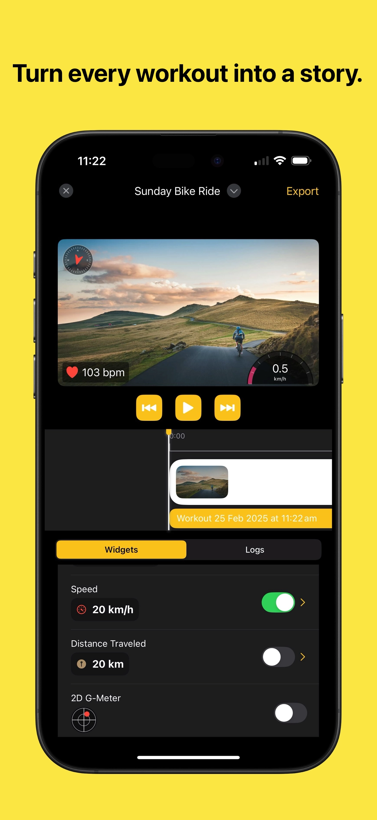 Replay Maker transforms your activities into beautifully dynamic videos, enriched with data captured seamlessly from your Apple devices. Share what your heart rate, altitude, pace, or even where you were on your route at that point in your workout, drag and drop your stats directly onto your video, export, and share it with friends. You can also share photos captured during your workout, complete with your stats at that point in time.